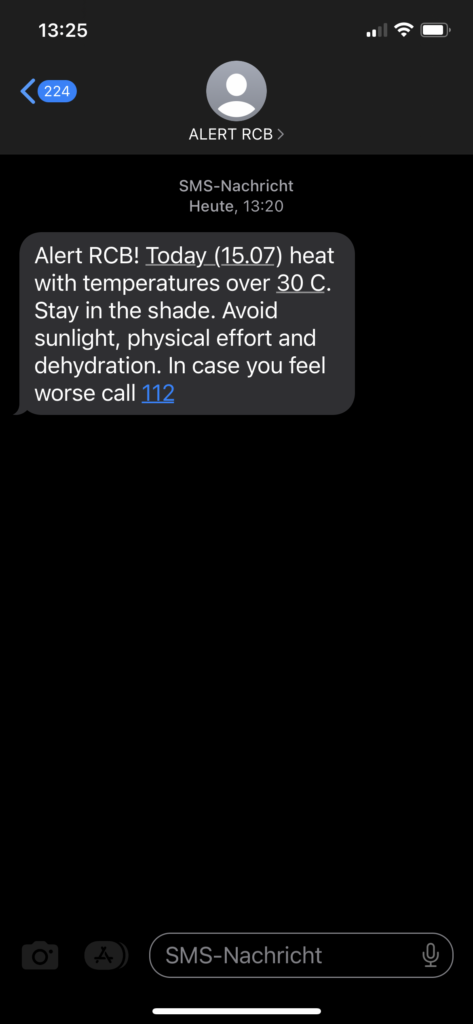 Vorhin habe ich die Nachricht auf mein Telefon erhalten, dass hohe Temperaturen erwartet werden. Es wird empfohlen: